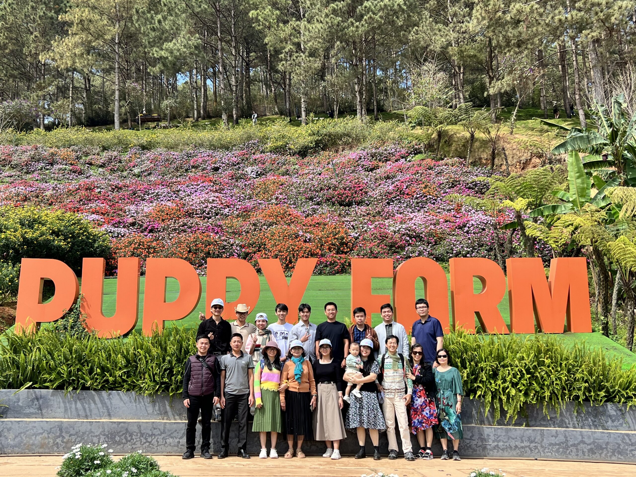 Our journey continued at the Puppy Farm, bringing joyful moments as everyone interacted with the adorable dogs. Later, we enjoyed a unique vegetable buffet, followed by a visit to Fresh Garden, where colorful flower landscapes and distinctive architecture provided the perfect backdrop for capturing lasting memories.
