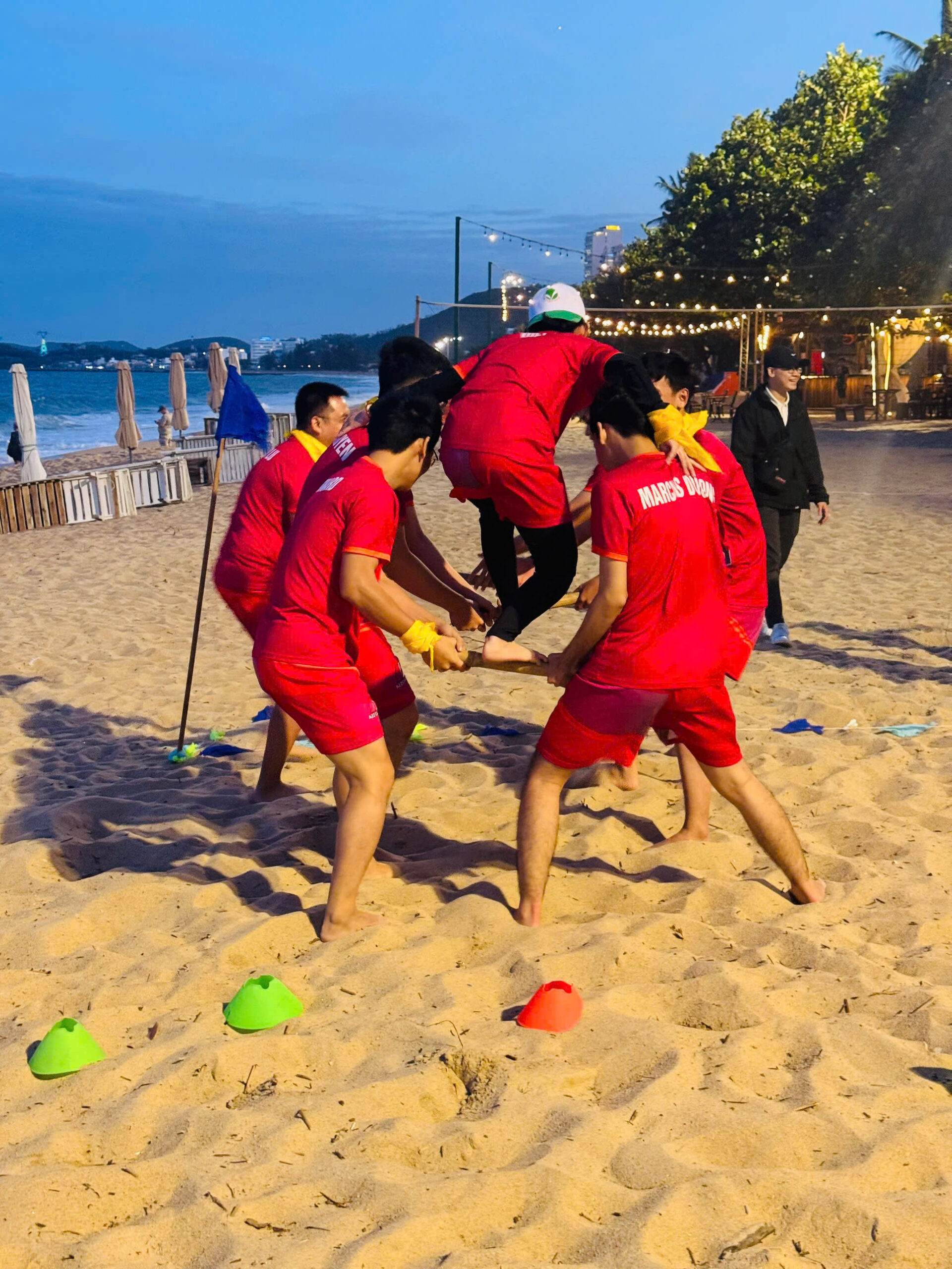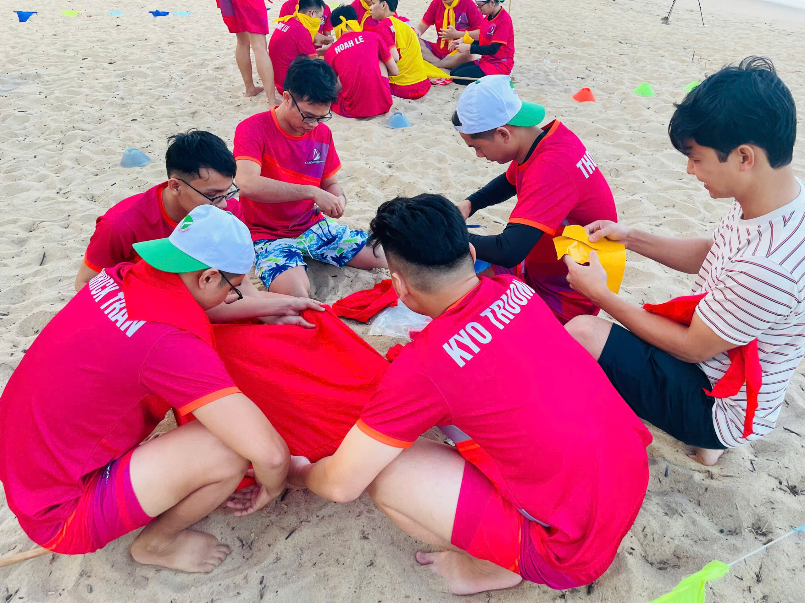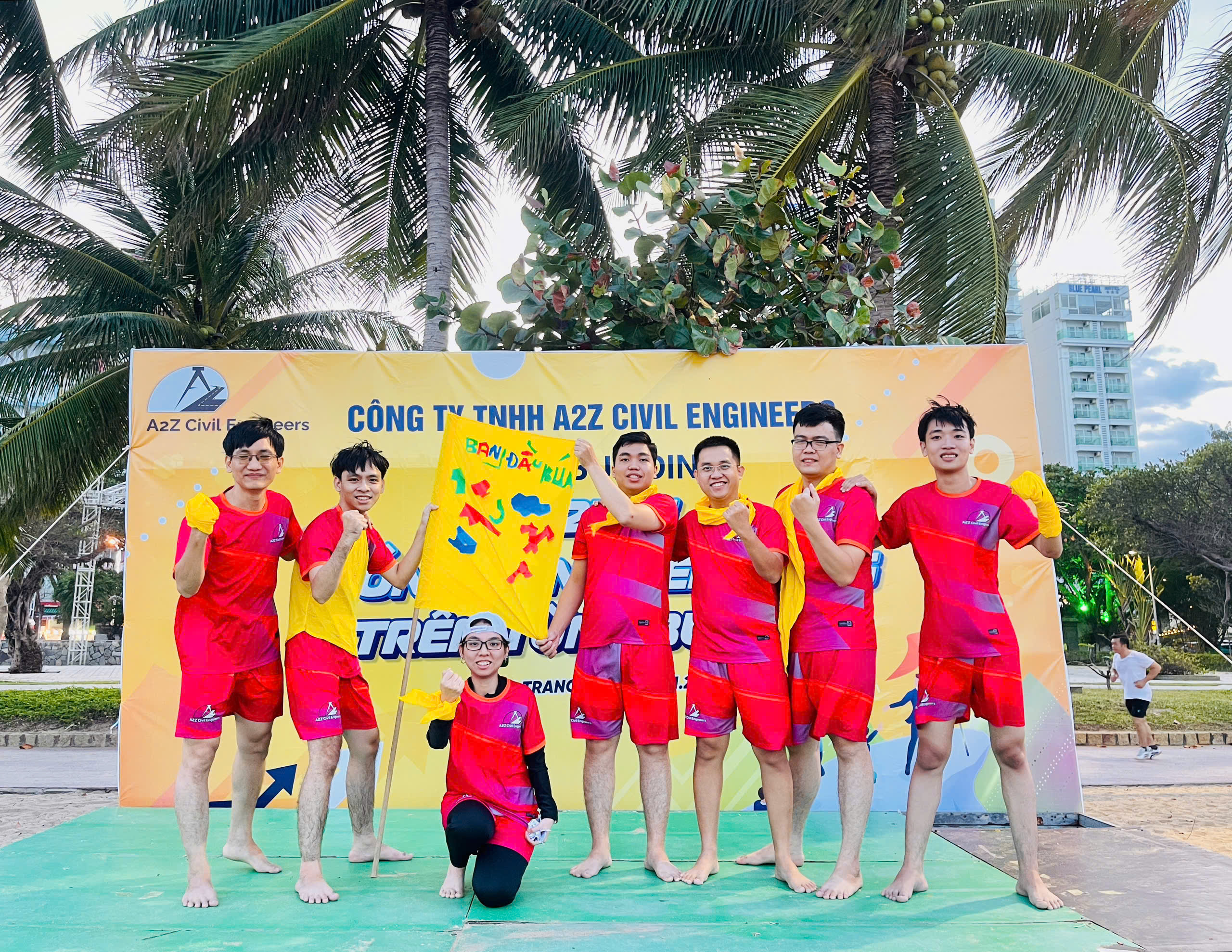 The Team Building event of A2Z Civil Engineers took place in an atmosphere filled with excitement and enthusiasm on the beautiful beaches of Nha Trang. We were divided into two teams – Hammerheads and Baby Shark – and together we took on a series of thrilling challenges including treasure hunting, sand boat racing, sack jumping, flag capture, and more.